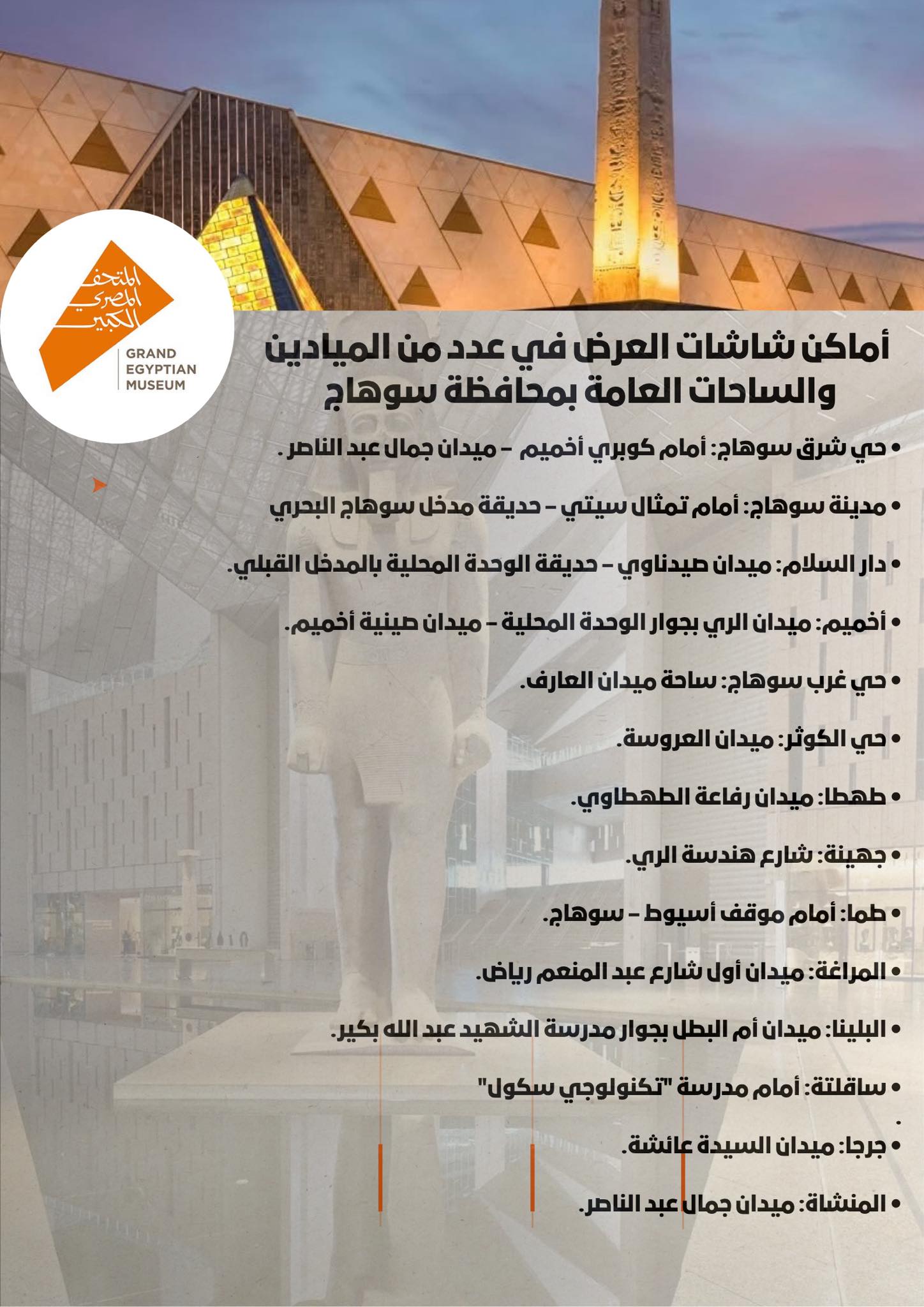 أماكن شاشات عرض افتتاح المتحف المصري الكبير بالمحافظات