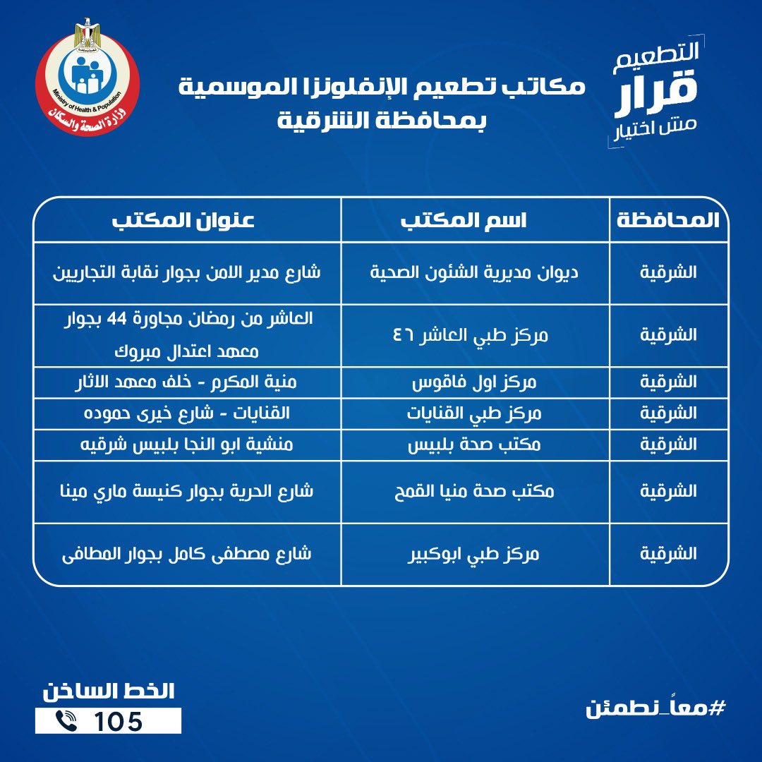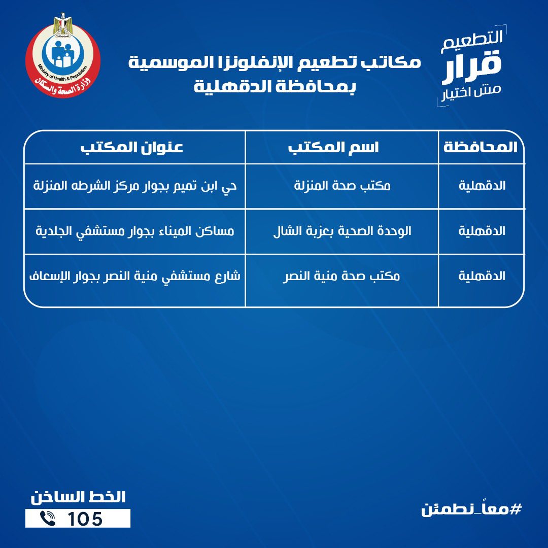 May be an image of ‎text that says '‎الموان وارة មាណរាៀបុរ مكاتب تطعیم الإنفلونزا الموسمية بمحافظة كفر الشيخ التطعيم قرار مش اختيار عنوان المكتب اسم المكتب مدينة كفرالشيخ اول طريق سخا البحوث الزراعيه بجوار المدخل الرئيسي لجامعه كفر الشيخ المحافظة مكتب صحة أول كفر الشيخ مدينة دسوق أرض محرم خلف عمر أفندى كفر الشيخ مكتب صحة أول دسوق مدينة مطوبس_ شارع بورسعيد مدينة الحامول- المركز الطبى العام بجوار السجل المدنى كفر الشيخ مكتب صحة مطوبس كفر الشيخ مكتب صحة الحامول مدينة فوه بجوار حديقة العائلات كفر الشيخ مكتب صحة فوه كفر الشيخ الخط الساخن 105 نطمئن #معاَ #معاَنطمنن‎'‎