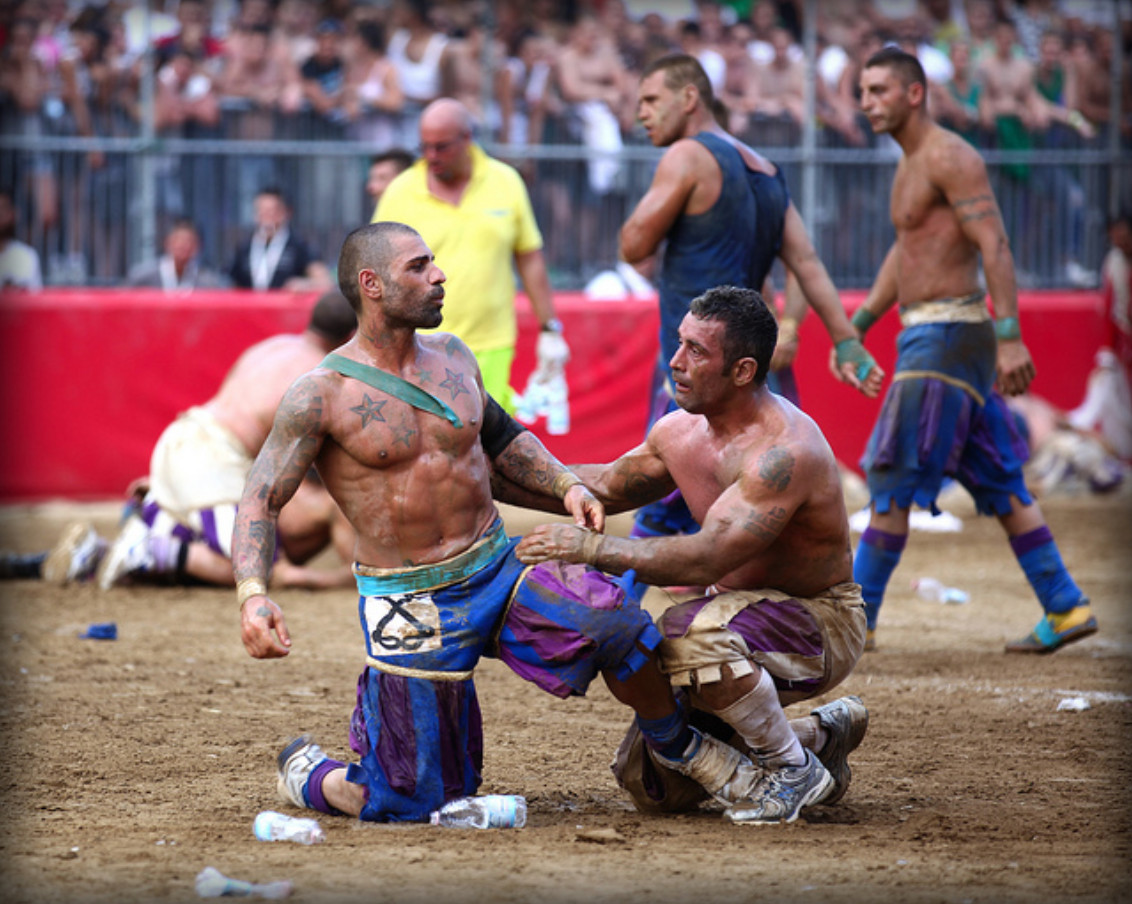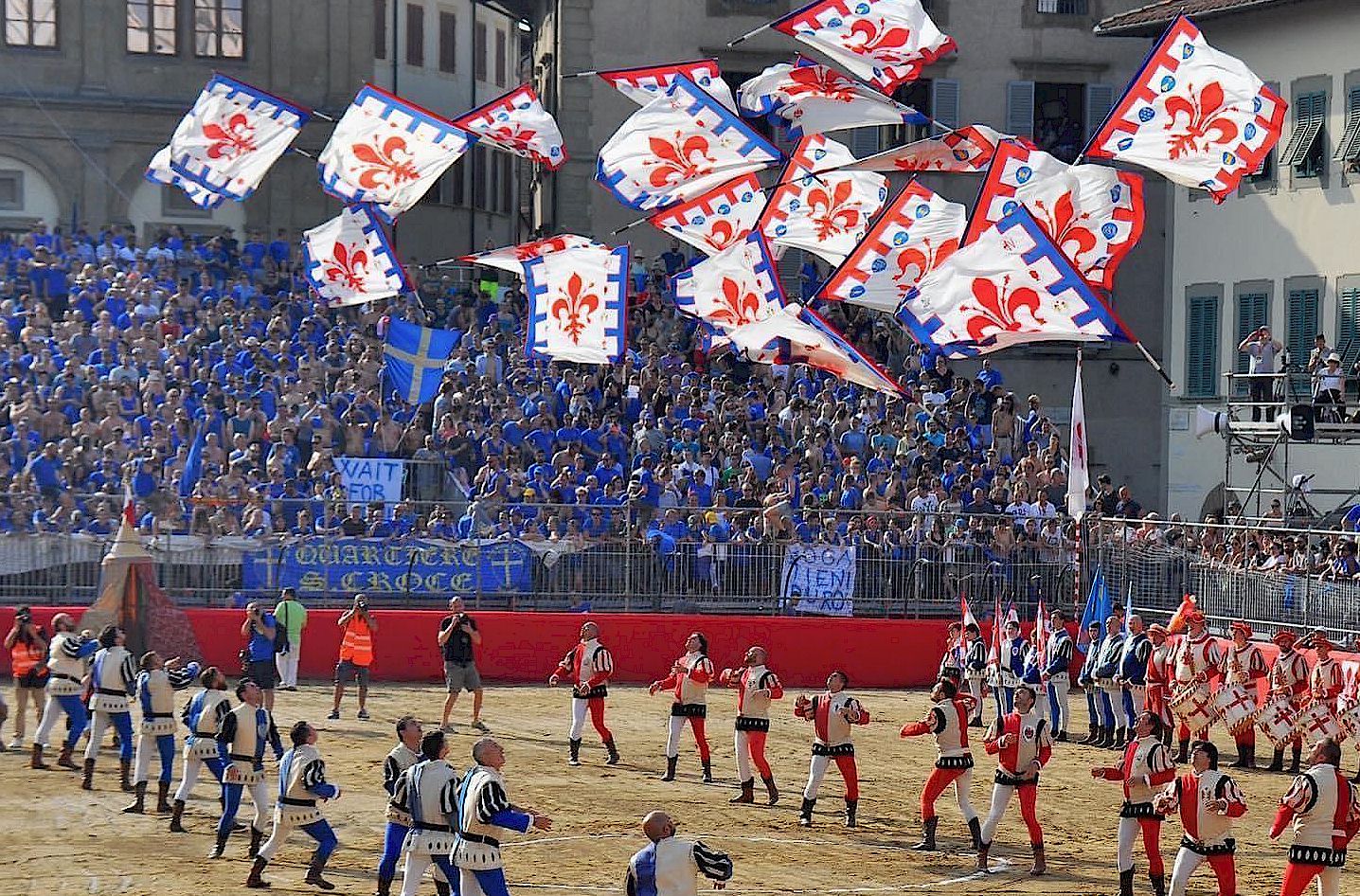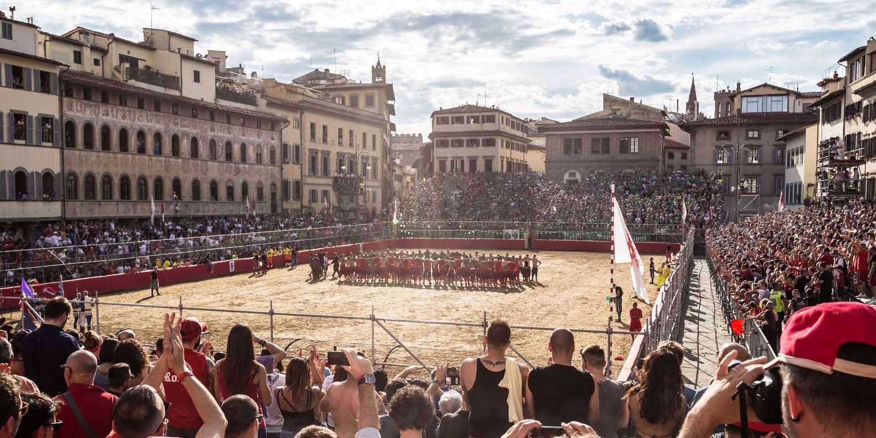 في قلب فلورنسا الإيطالية وتحديدًا في ساحة بيازا سانتا كروتشي.. كل سنة يوم 24 يونيو.. المدينة كلها بتقف على رجلها علشان تشوف واحدة من أغرب وأعنف الألعاب في العالم.. “كالتشيو ستوريكو فيورنتينو” الحدث ده بييجي مع عيد سانت جون المعمدان.. وبيحوّل اليوم ده لخلطة غريبة بين احتفال شعبي وتراث تاريخي ومعركة مفتوحة قدام آلاف المتفرجين.