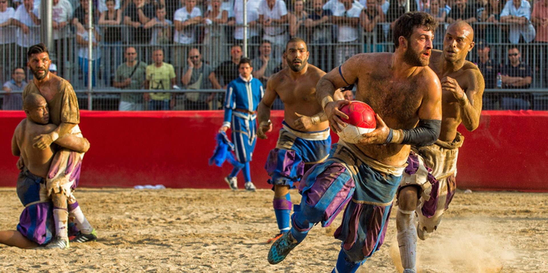 كالتشيو ستوريكو مش كرة قدم بالمعنى اللي نعرفه.. هي لعبة فيها جري ومسك كورة وضرب وخناق طبعًا.. والتحام بدني عنيف.. واللاعب مش مطلوب منه يبقى مهاري بس لا ده مطلوب منه يبقى قوي ومستحمل وواقف على رجله.. والماتش هنا أقرب لساحة قتال منه لملعب كورة عادي.