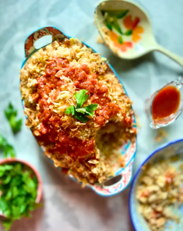 • مبكبكة بالسجق/ باللحمة