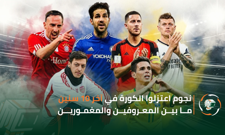 نجوم كتير اعتزلوا في آخر عشر سنين وآخرهم كان خلال الأيام القليلة اللي فاتت على رأسهم البرازيلي أوسكار ولاعب أرسنال السابق والقائد آرون رامسي اللي اعتزل في سن 35 بعد مسيرة كبيرة مليانة إنجازات.. اعتزالهم سبب صدمة لجمهور الكرة واللي يلفت النظر إن أسباب الاعتزال مش بس السن لكن كمان الإصابات المشاكل الصحية الضغوط النفسية وفقدان الشغف وأحيانًا قرار شخصي بالاعتزال في القمة وده اللي بيخلّي كل حالة ليها ظروفها المختلفة.